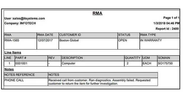 Advanced Manufacturing and Inventory Control Software RMA module is used for Customer information, Customer orders and shipments . This module is used in addition to the inventory module. Screens for adding and subtracting inventory are included. Sample reports include "Inventory by location", "Inventory Value", "Transaction Log Report" and more. Some of the screen shots are given below.